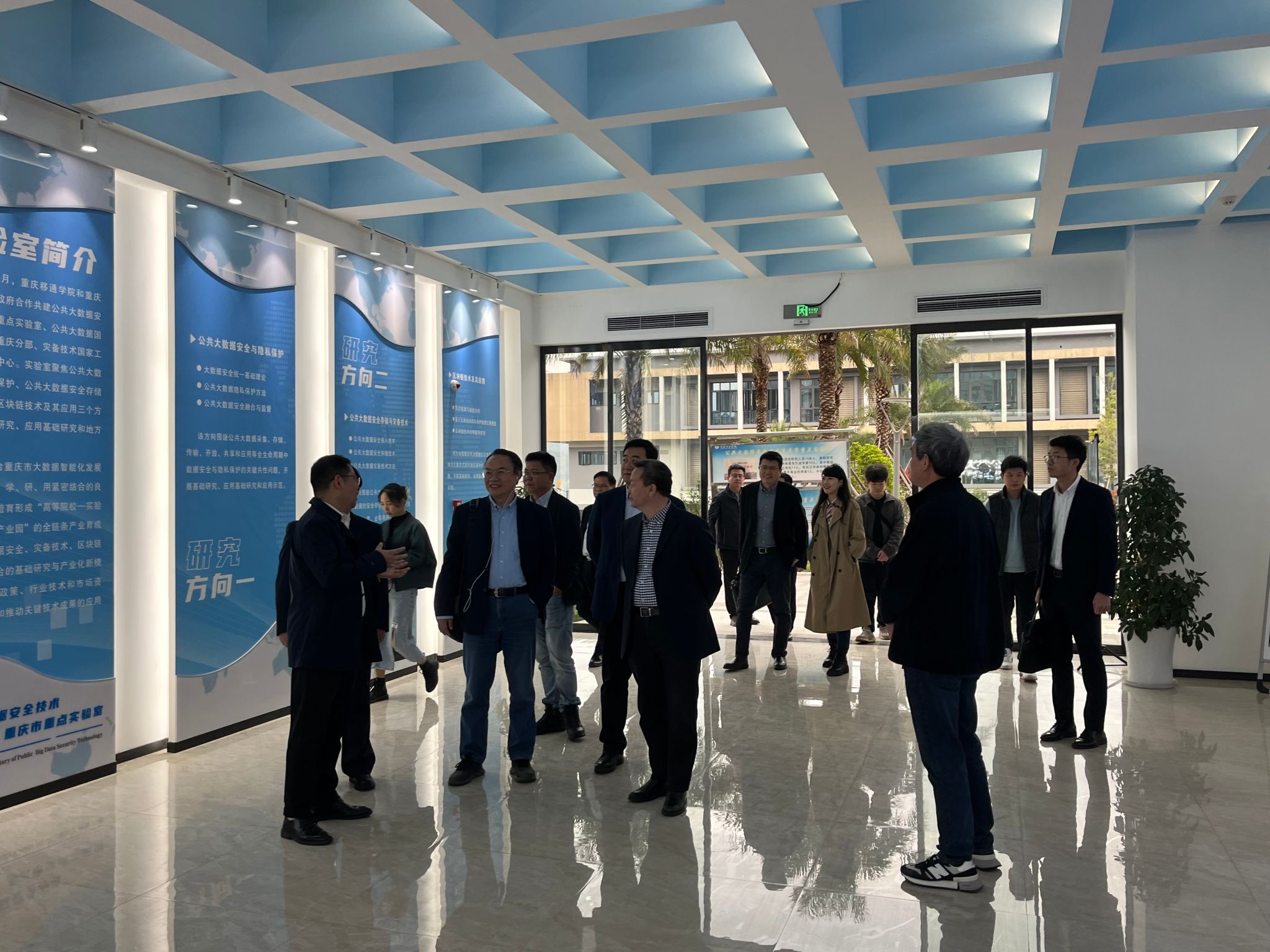 3月31日上午,北京东方通科技股份有限公司CTO、集团执行副总裁张春林一行到实验室参观。綦江区人大常委会主任母明江,区委常委、统战部部长陶敏,区政府党组成员、副区长龚锐陪同参观。