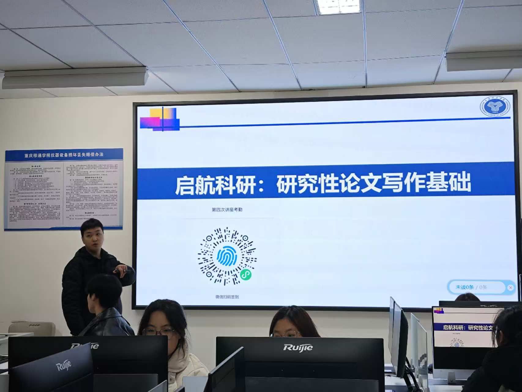 2024年12月18日下午,为加强学生对研究性论文写作的了解,帮助学生打下研究性论文写作基础,公共大数据安全技术重点实验室举办以“启航科研:研究性论文写作基础”为主题的科研讲座,共有30名同学参加。本次讲座由任强老师主讲,邓秋菊、林华艳老师旁听。