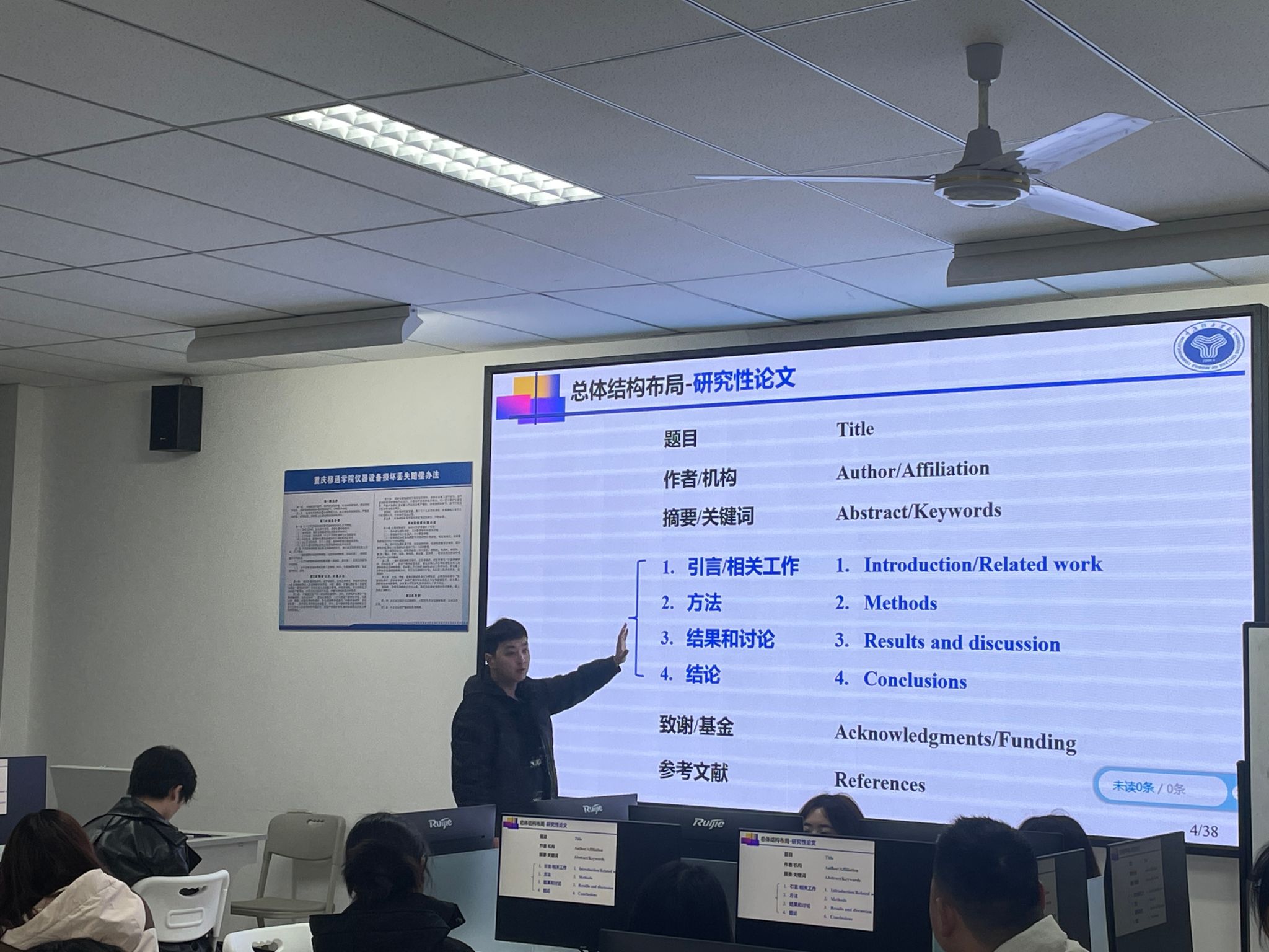 此外,任老师在讲座中为同学们精心挑选了众多论文案例作讲解分析,使晦涩抽象的科研论文写作变得生动具体。为了帮助同学们更好地理解和掌握如何写作,任老师推荐了一些论文写作工具,包括Deepl、Academic Phrasebank等英语写作辅助神器,以及一些专业名词查询神器。任老师特别指出,在撰写第一篇学术论文时,模仿是一个有效的学习策略,可以先寻找5篇与自己研究方向和内容高度相关的论文,通过仔细分析和模仿这些论文的结构和内容,学习到论文的标准结构、语言风格和论证方法,并在此基础上,结合自己的研究内容和创新点,形成具有原创性的论文,同时,这一过程也有助于同学们理解该领域的研究动态和写作规范,但必须确保遵守学术诚信和版权规范,避免抄袭,并确保引用和参考的准确性。这样,研究者不仅能够学习到学术论文的写作技巧,还能在此基础上形成自己的研究风格和方法。